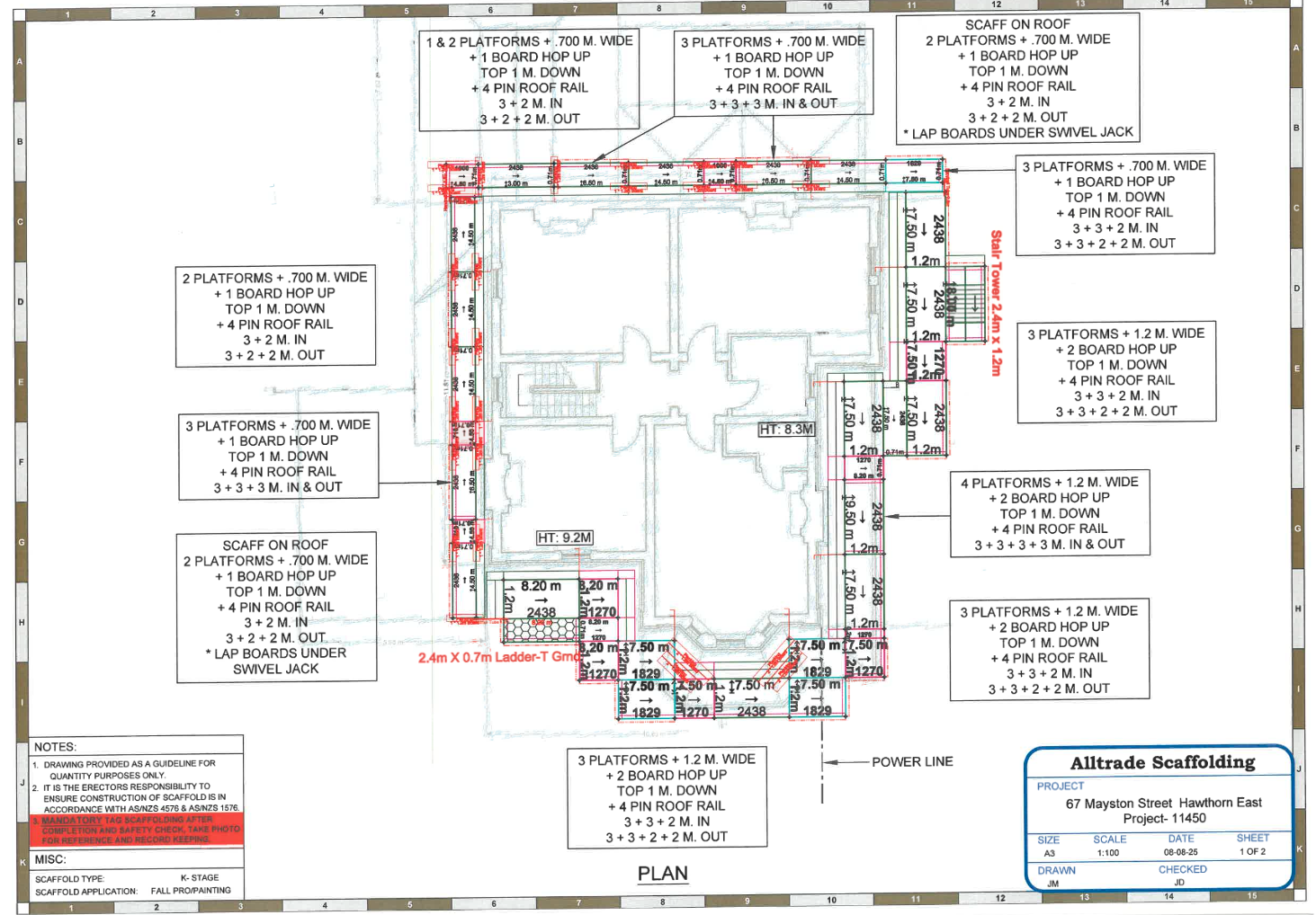 Alltrade Scaffolding delivered a multi-level scaffold system at 67 Mayston Street, Hawthorn East, ensuring safe roofing and façade access with full AS/NZS compliance.